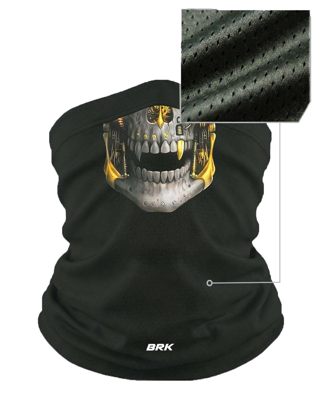Bandana Black Mask Brk Caveira Mecânica Detalhes Dourados com Proteção UV50+