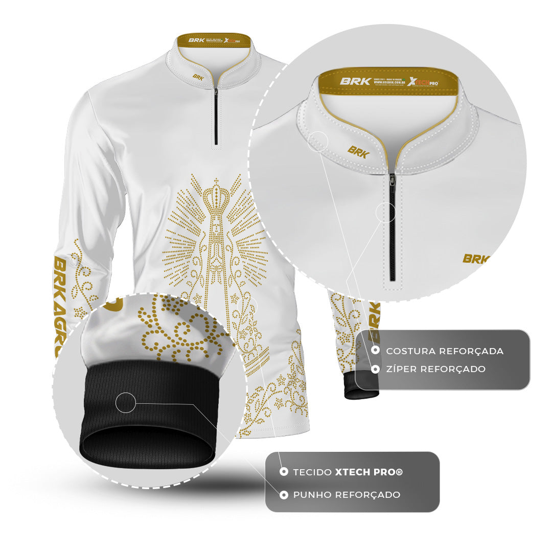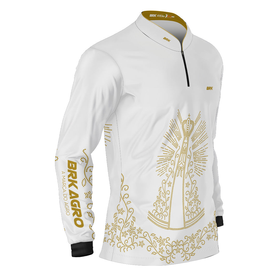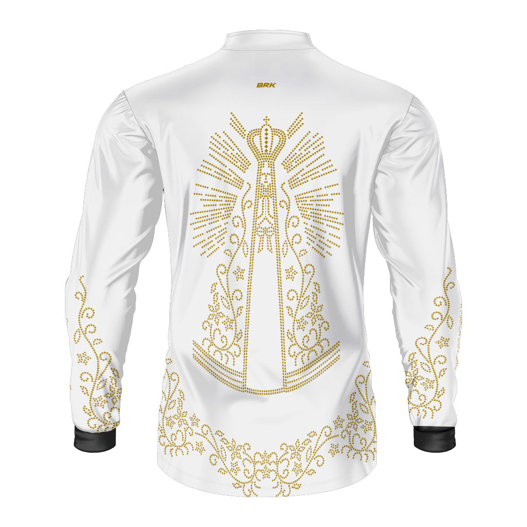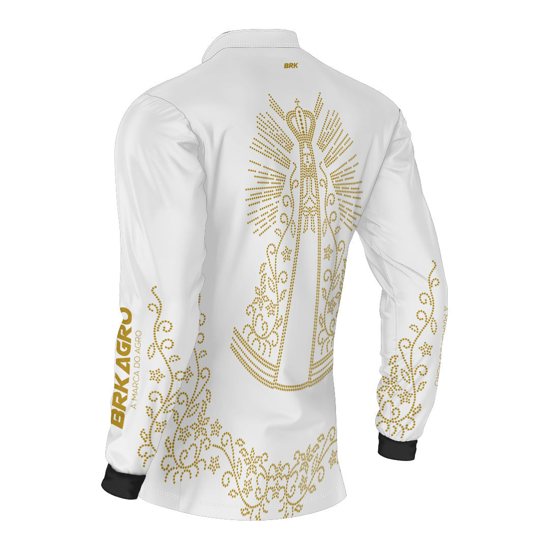 Camisa Agro Brk Nossa Senhora Strass Branca com Proteção Solar UV50+