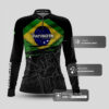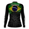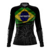 Camisa Agro Feminina Brk Básica Patriota Preta Bandeira do Brasil com Proteção UV50+