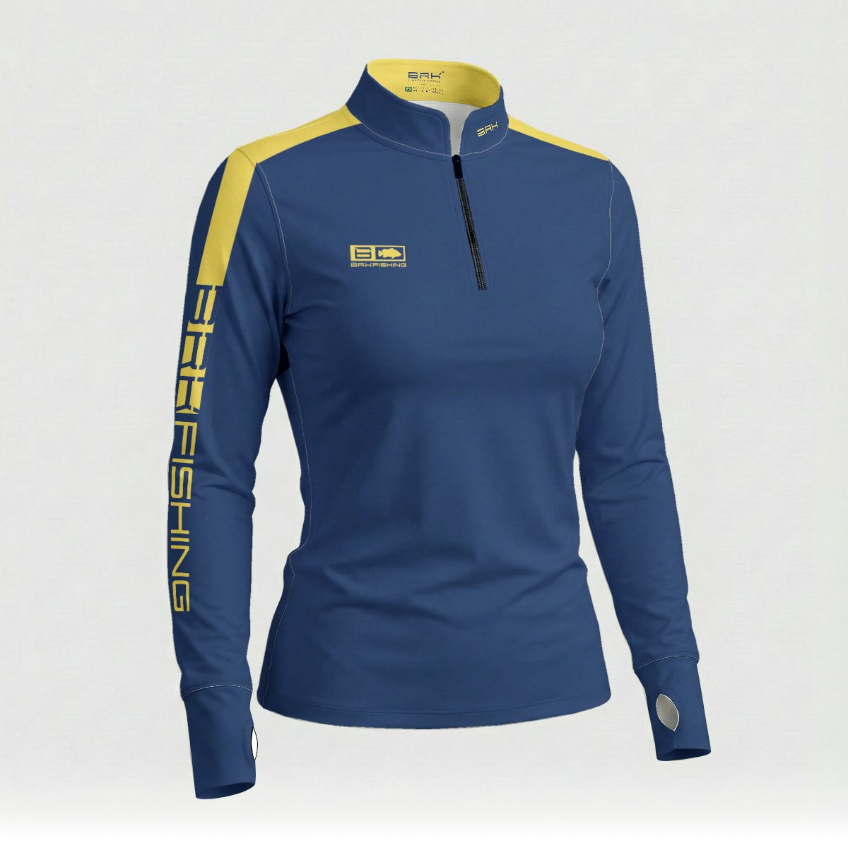 Camisa ArmorX Feminina Brk Fishing Azul com Detalhes em Amarelo com Proteção UV50+