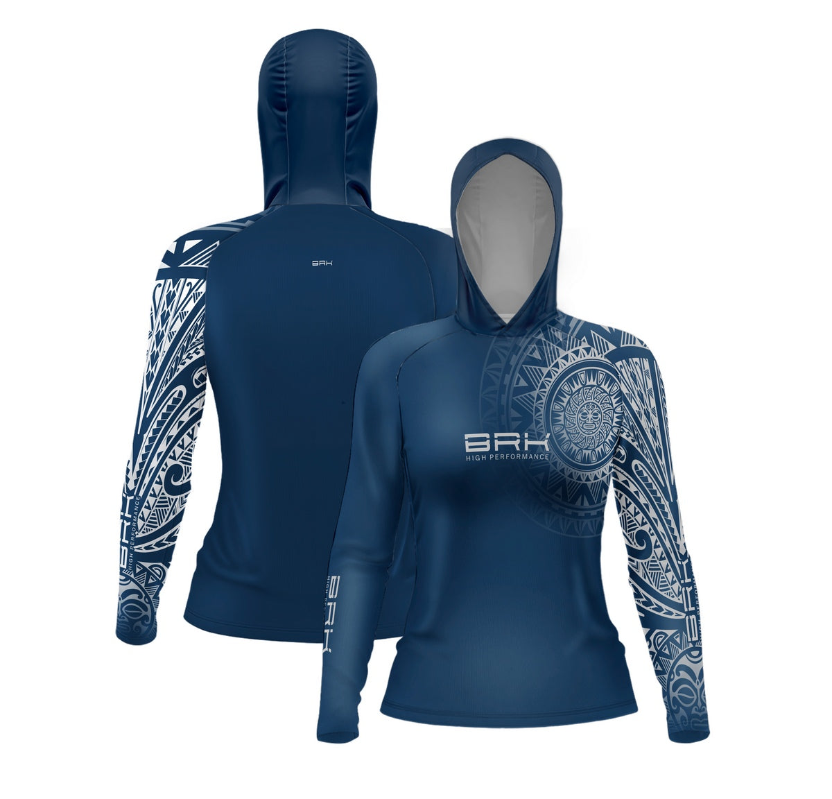 Camisa com Capuz Feminina Brk Maori Azul Marinho com Proteção Solar UV50+