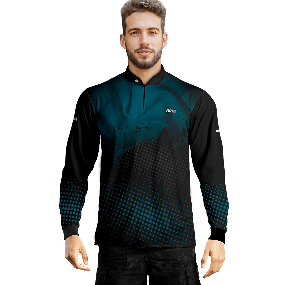 Camisa de Pesca Brk Azul e Preta com Proteção Solar UV50+