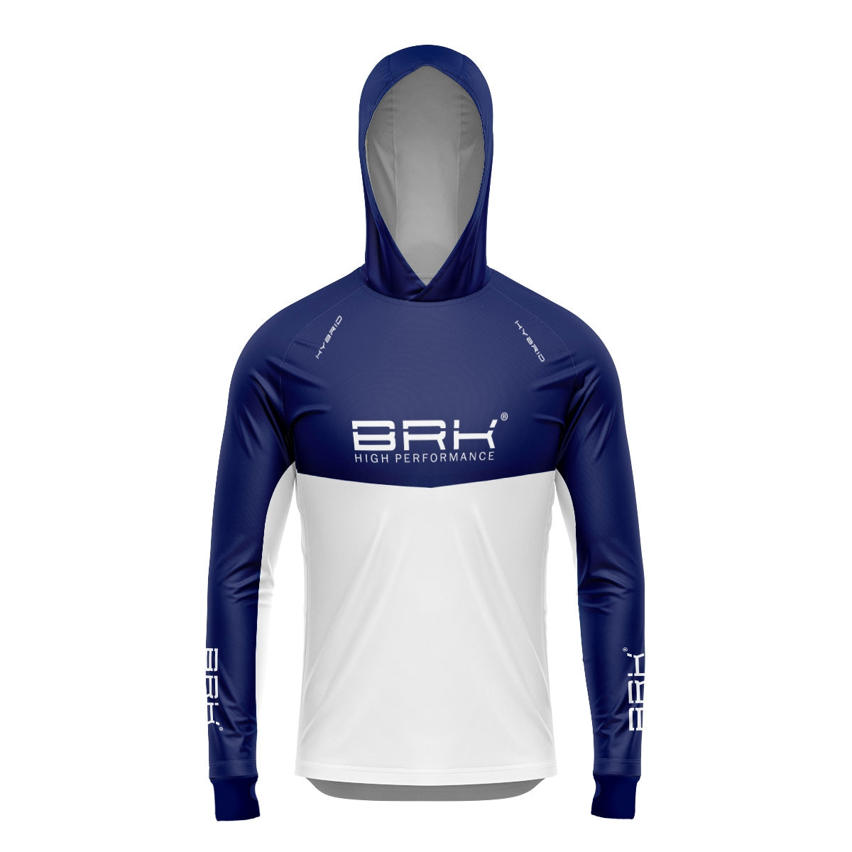 Camisa de Pesca Brk com Capuz Hybrid Blue Fishing com Proteção Solar UV50+ Envio Imediato