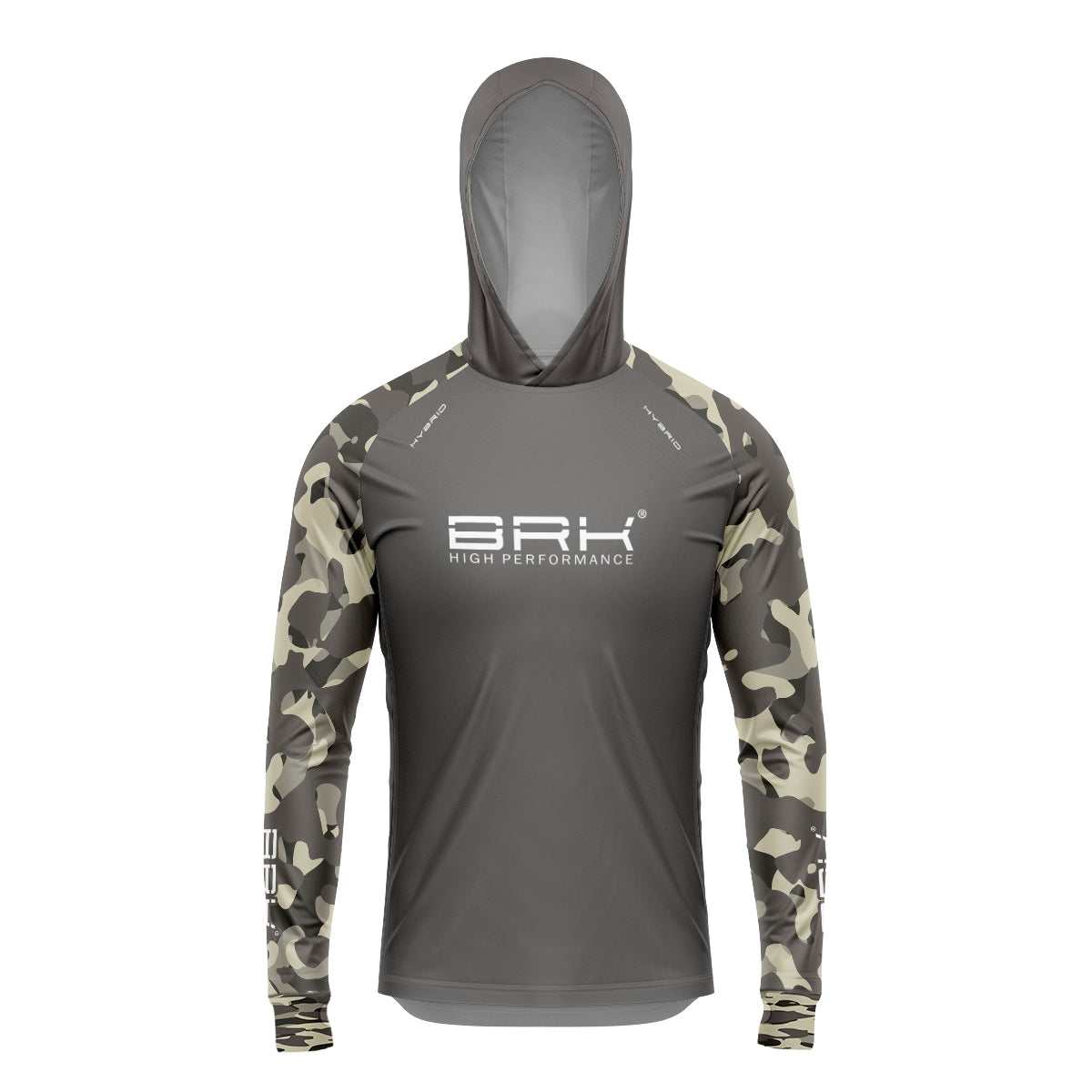 Camisa de Pesca Brk com Luva e Capuz Hybrid Camuflada Cinza e Verde com Proteção Solar UV50+