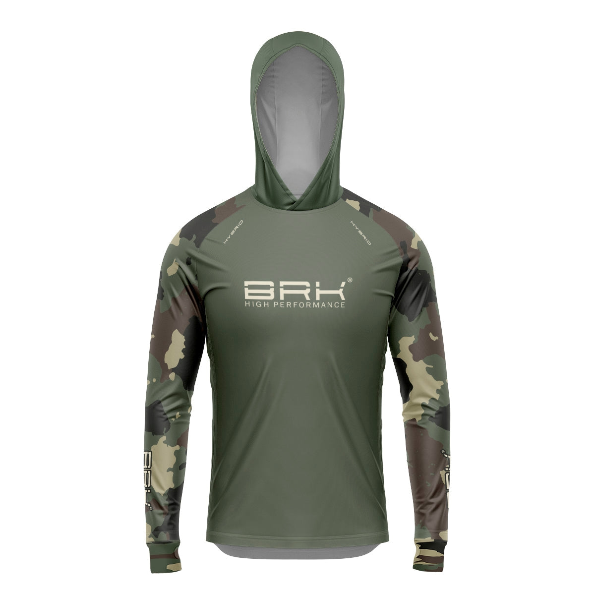 Camisa de Pesca Brk com Luva e Capuz Hybrid Camuflada Verde com Proteção Solar UV50+