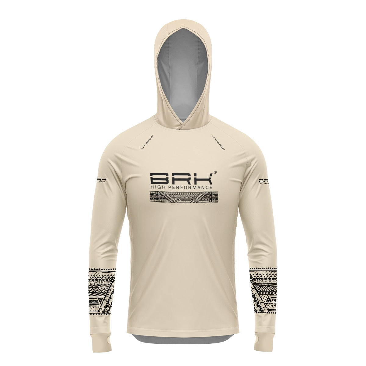 Camisa de Pesca Brk com Luva e Capuz Hybrid Maori Bege com Proteção Solar UV50+