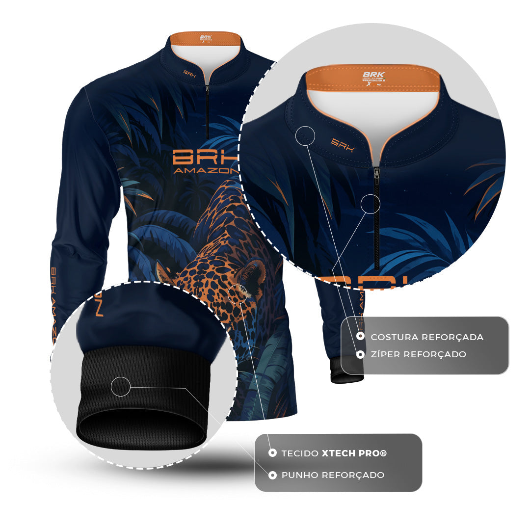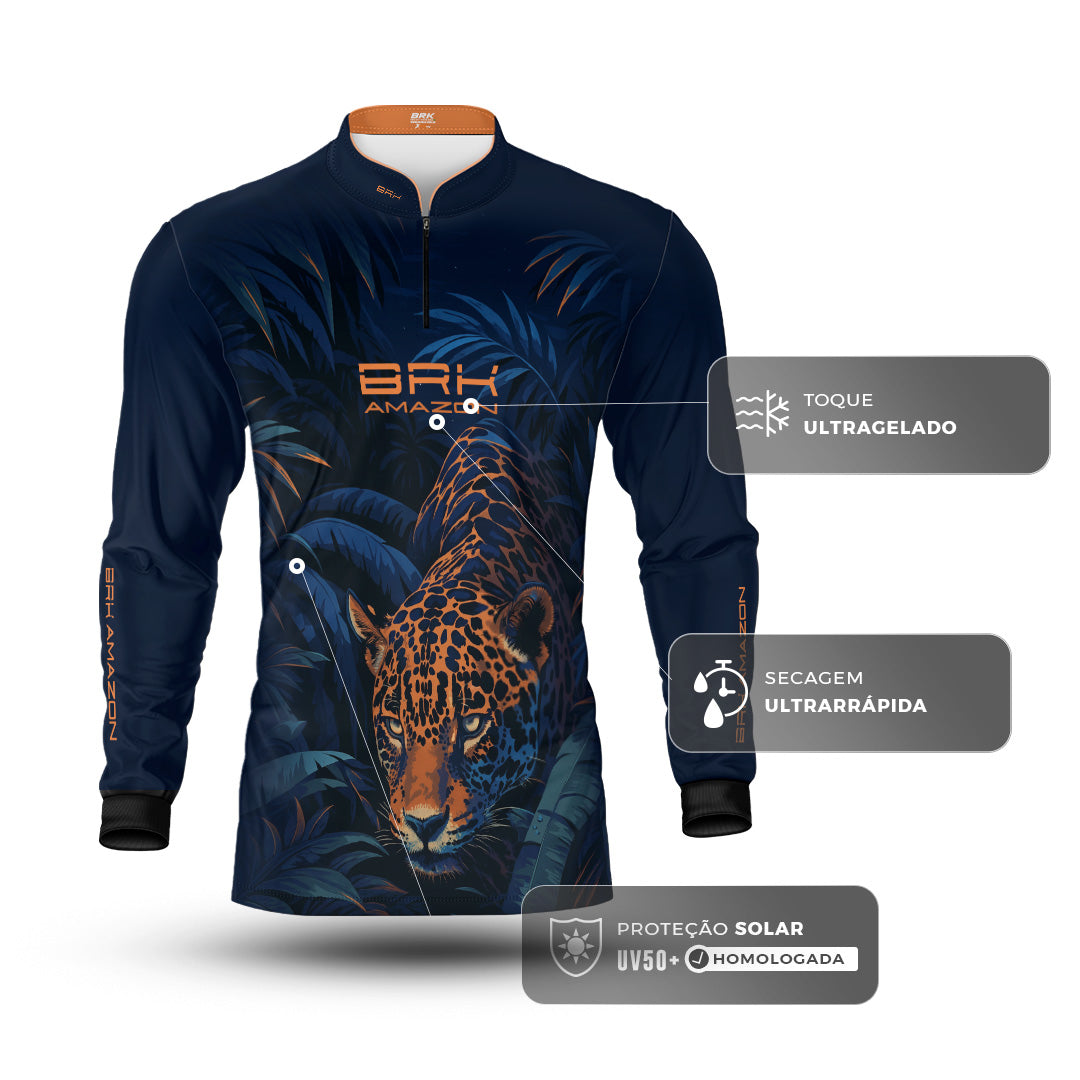Camisa de Pesca Brk Amazon Onça Azul com Proteção UV50