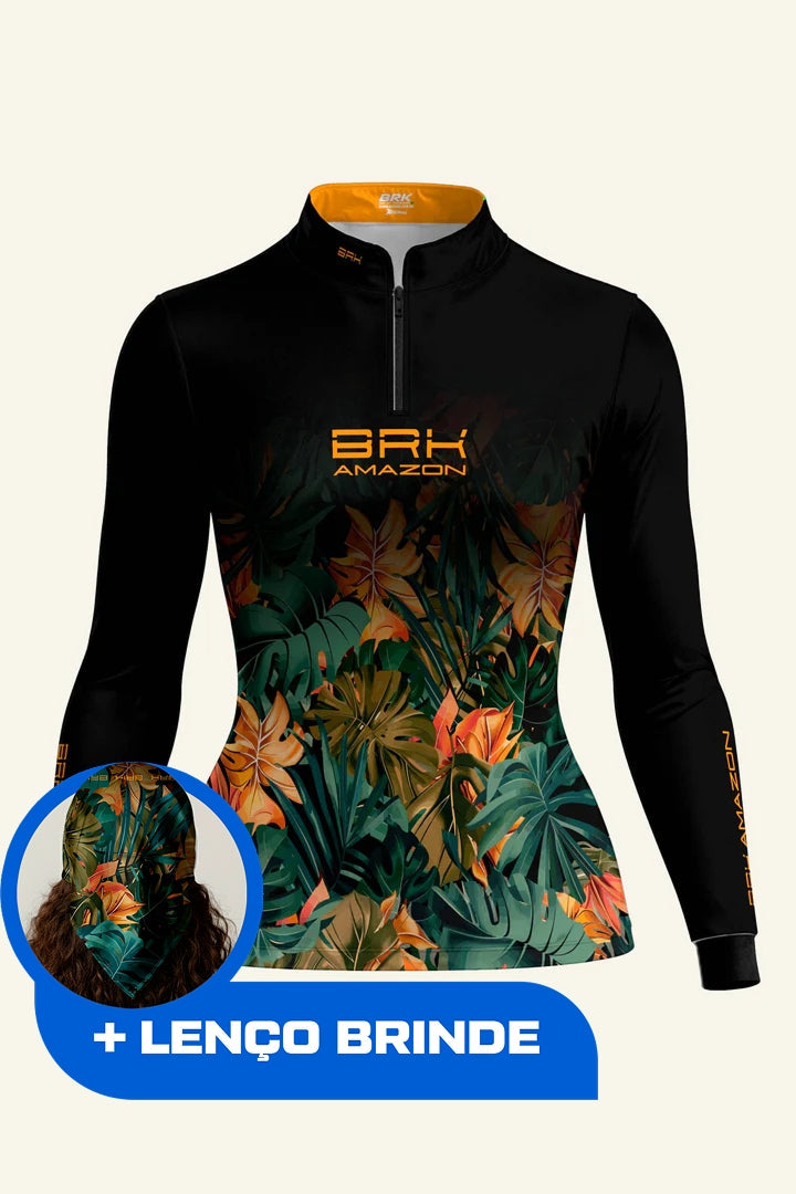 Camisa Feminina Brk Amazon Preta Folhagem com Proteção UV50