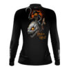 Camisa de Pesca Feminina Brk Azul Halloween Caveira de Peixe com Proteção UV50