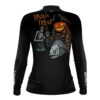 Camisa de Pesca Feminina Brk Azul Halloween Esqueleto Pescador com Proteção UV50