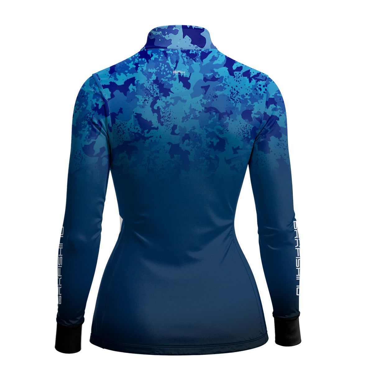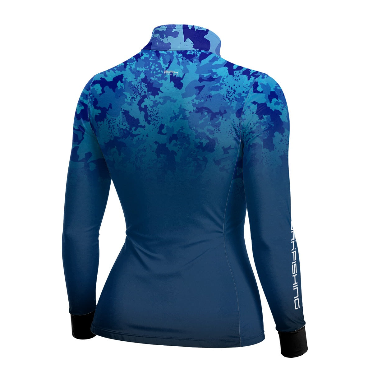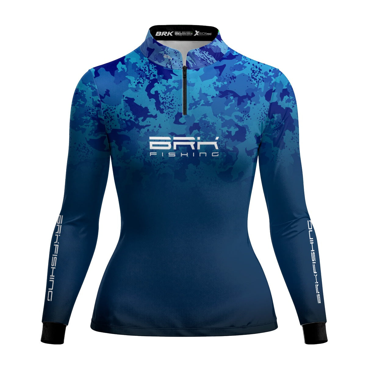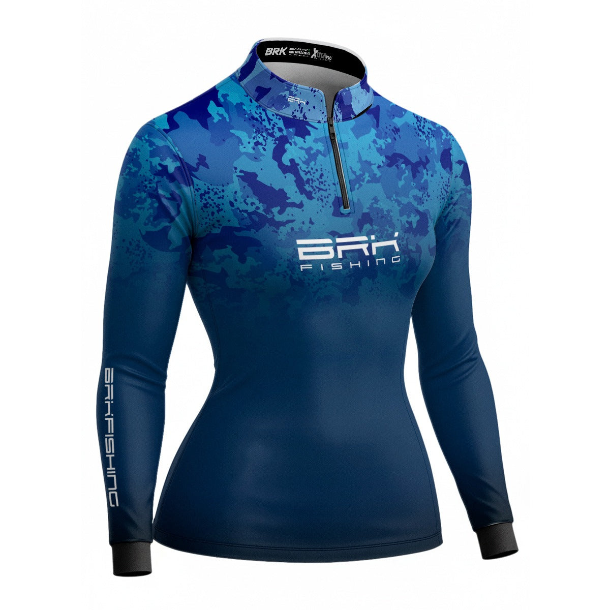 Camisa de Pesca Feminina Brk Azul Naval Camuflado com Proteção UV50+