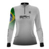 Camisa de Pesca Feminina Brk Branca Bandeira do Brasil Garateia com Proteção UV50+