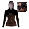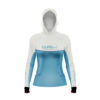 Camisa de Pesca Feminina Brk com Capuz Hybrid Bege com Azul com Proteção Solar UV50+ Envio Imediato