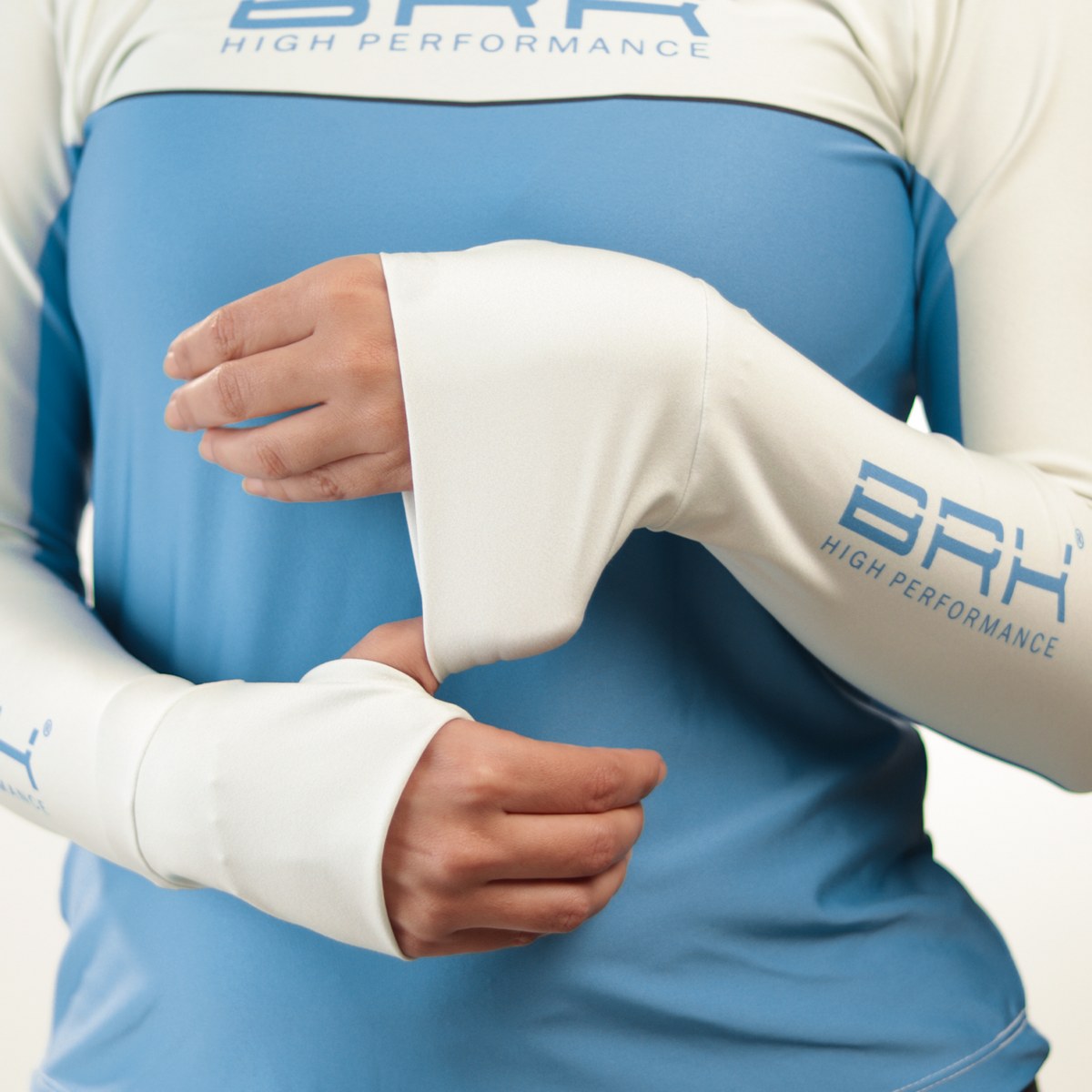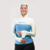 Camisa de Pesca Feminina Brk com Capuz Hybrid Bege com Azul com Proteção Solar UV50+