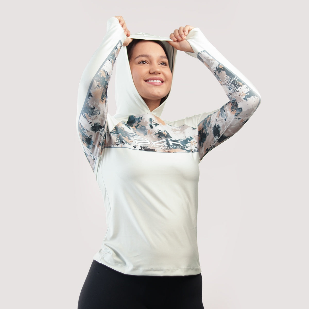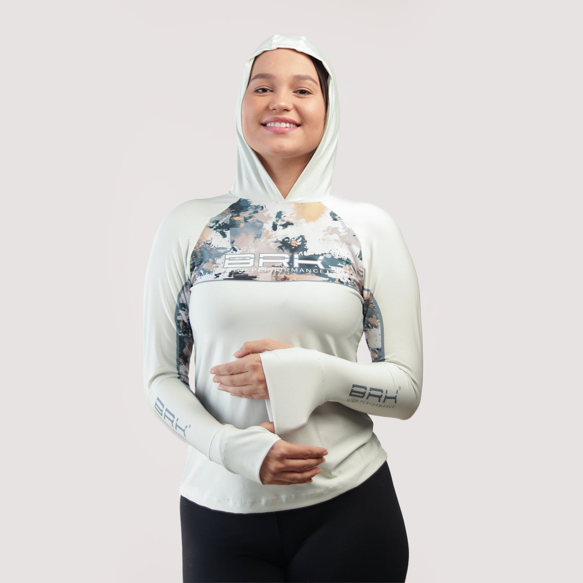 Camisa de Pesca Feminina Brk com Capuz Hybrid Camuflagem Fishing com Proteção Solar UV50+