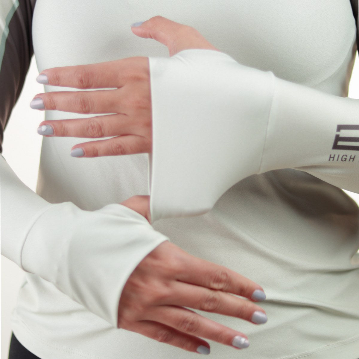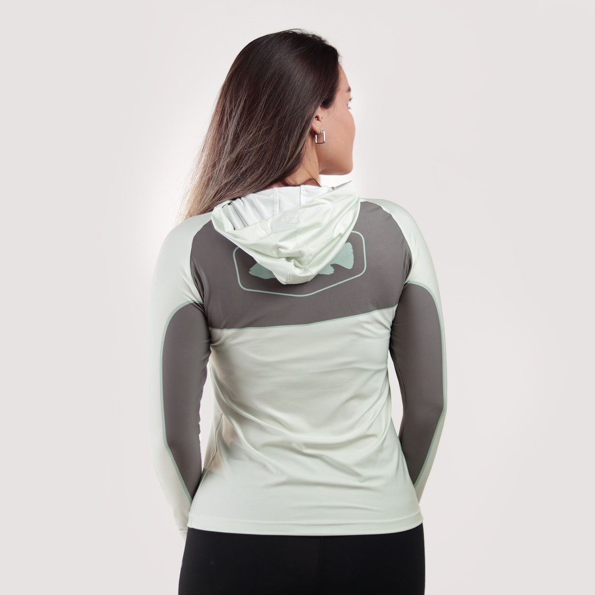 Camisa de Pesca Feminina Brk com Capuz Hybrid Cinza Bege com Proteção Solar UV50+