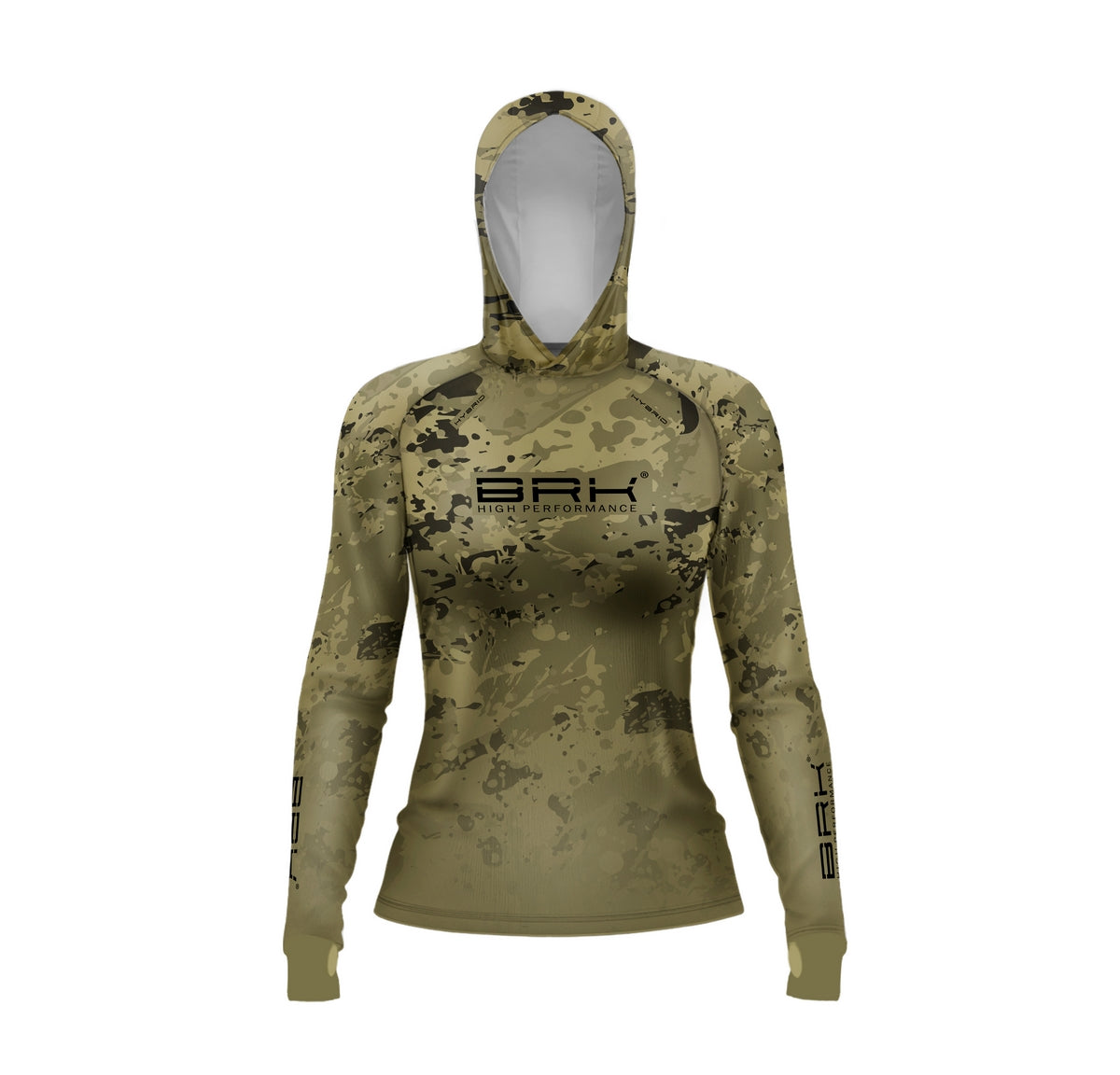 Camisa de Pesca Feminina Brk com Luva e Capuz Hybrid Camuflado Verde com Proteção Solar UV50+