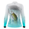 Camisa de Pesca Feminina Brk Tucunaré Branca e Azul com Proteção UV50