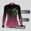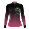 Camisa Feminina Agro Brk Camuflado Preto e Rosa Bandeira do Brasil com Proteção Solar UV50+