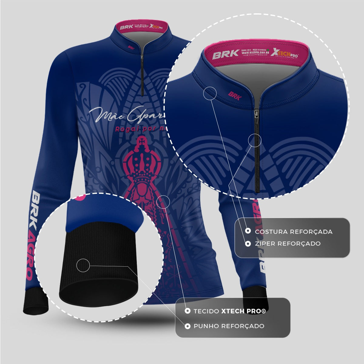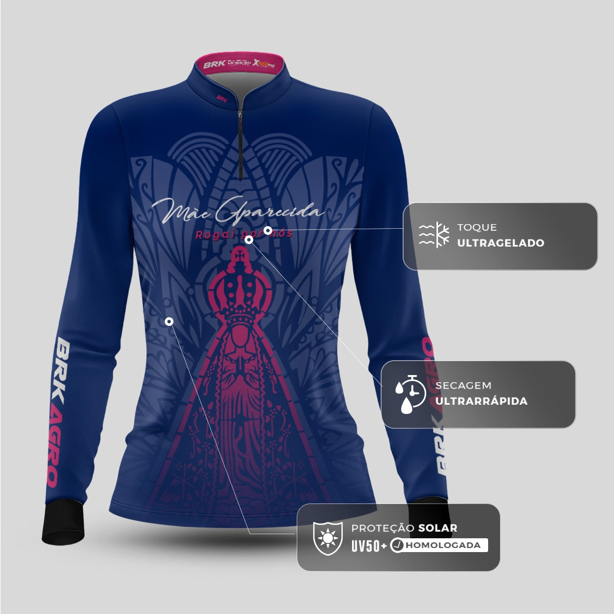 Camisa Feminina Agro Brk Nossa Senhora Mãe Aparecida com Proteção Solar UV50+