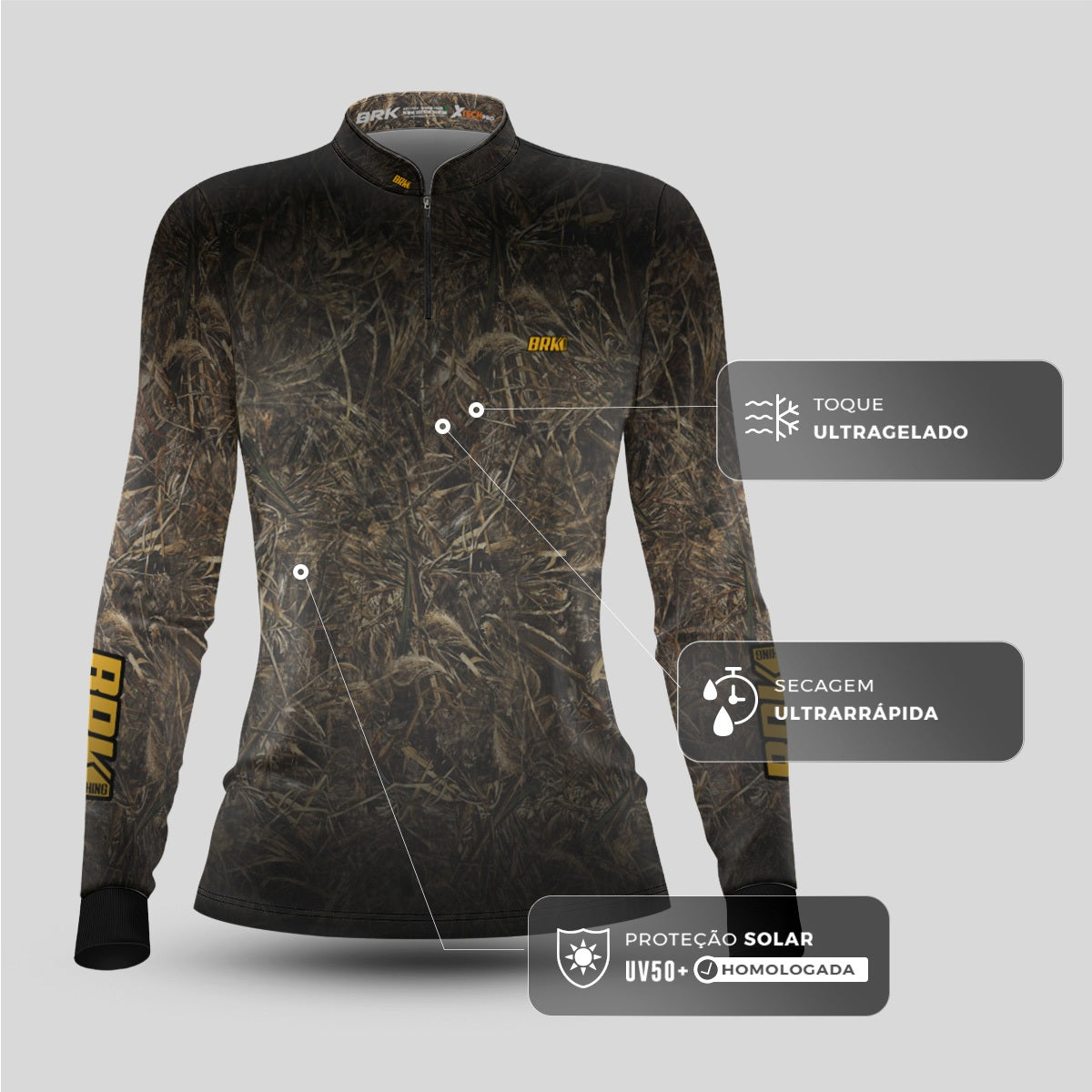 Camisa Feminina de Caça e Pesca Brk Real Tree Camuflada com Proteção Solar UV50+