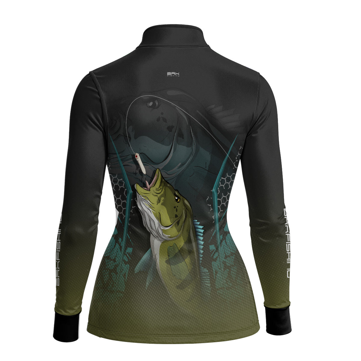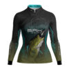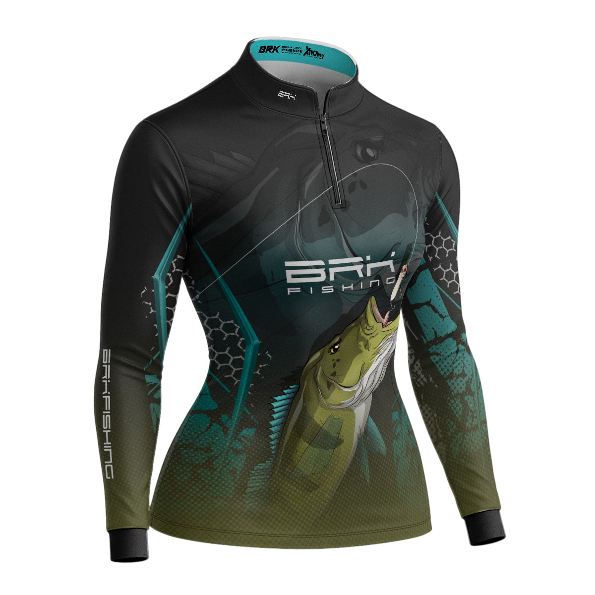 Camisa Feminina de Pesca Azul e Preta Brk Tucunaré Azul com UV50+