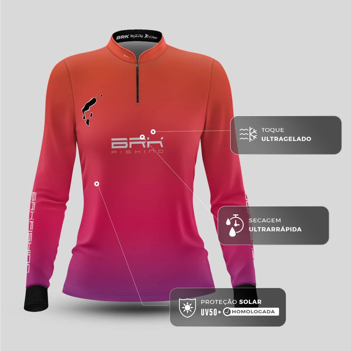 Camisa Feminina de Pesca Brk Rosa Tucunaré Azul com UV50+