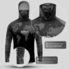 A bandana Black Mask integrada na camisa é feita com microfuros estrategicamente posicionados, permitindo uma respiração fácil e confortável. Por possuir elastano, vai se esticar e não apertar seu rosto além de garantir a proteção solar UV50+.