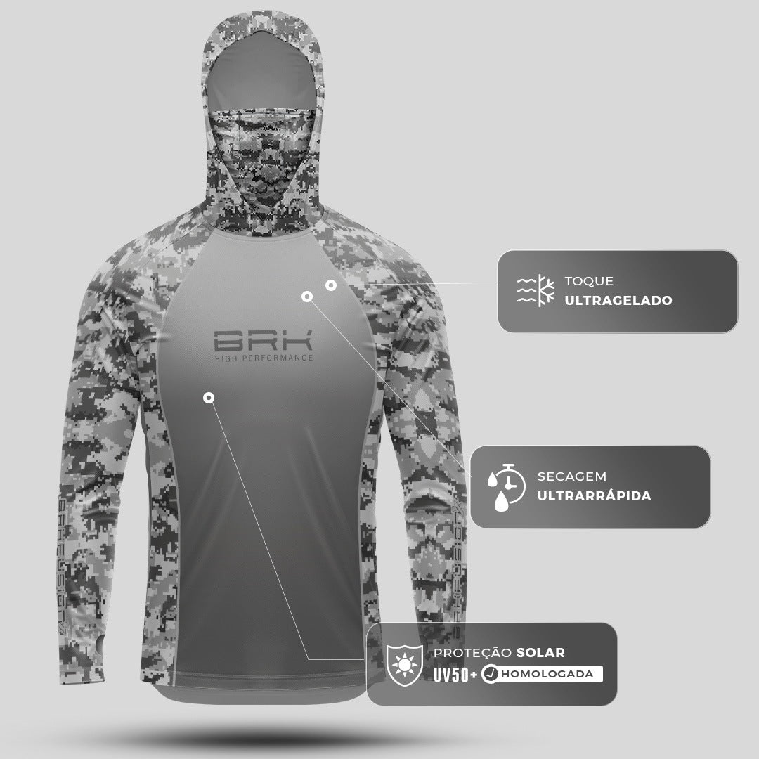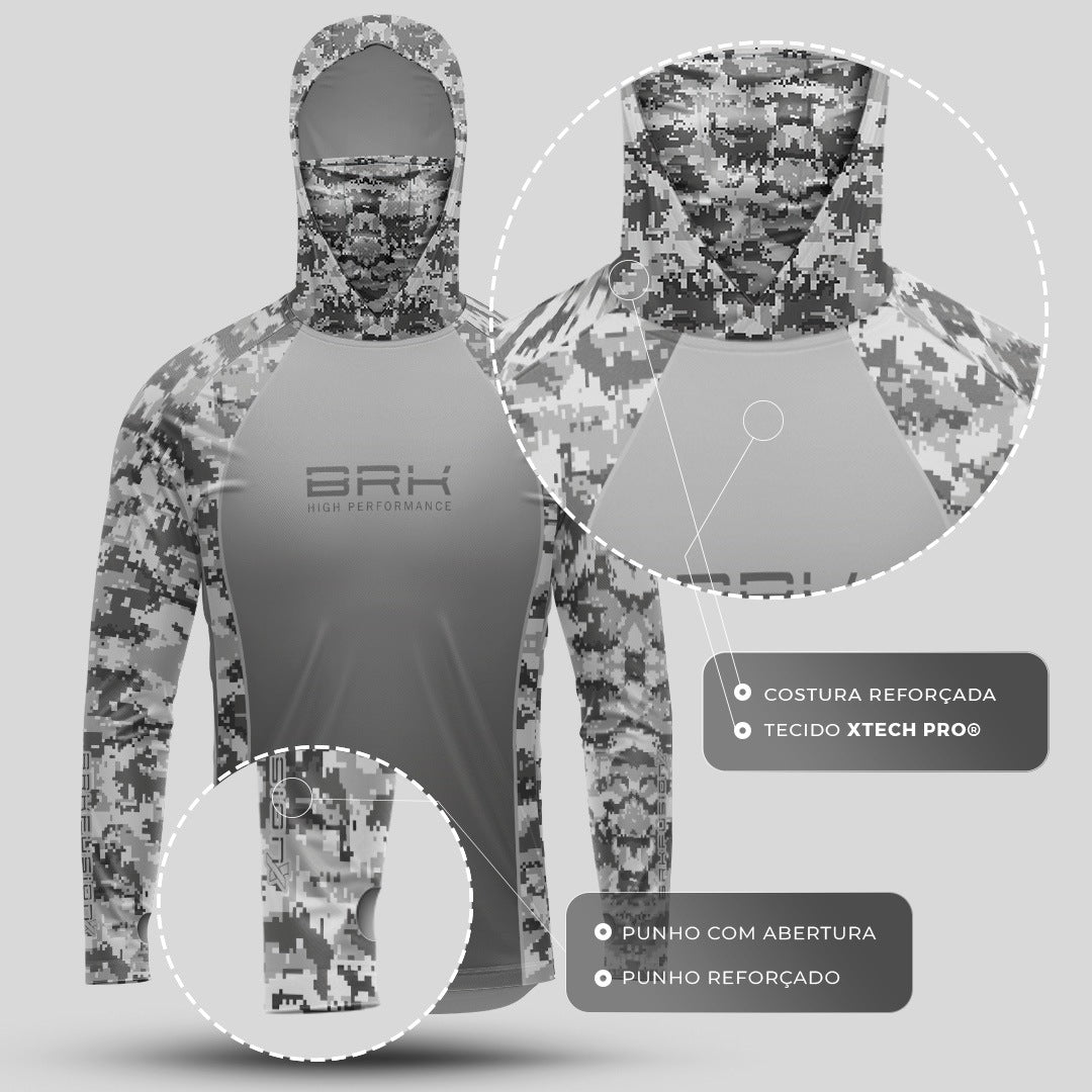 Camisa FusionX Brk Fishing Camuflado Cinza com Proteção UV50+