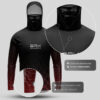 A bandana Black Mask integrada na camisa é feita com microfuros estrategicamente posicionados, permitindo uma respiração fácil e confortável. Por possuir elastano, vai se esticar e não apertar seu rosto além de garantir a proteção solar UV50+.