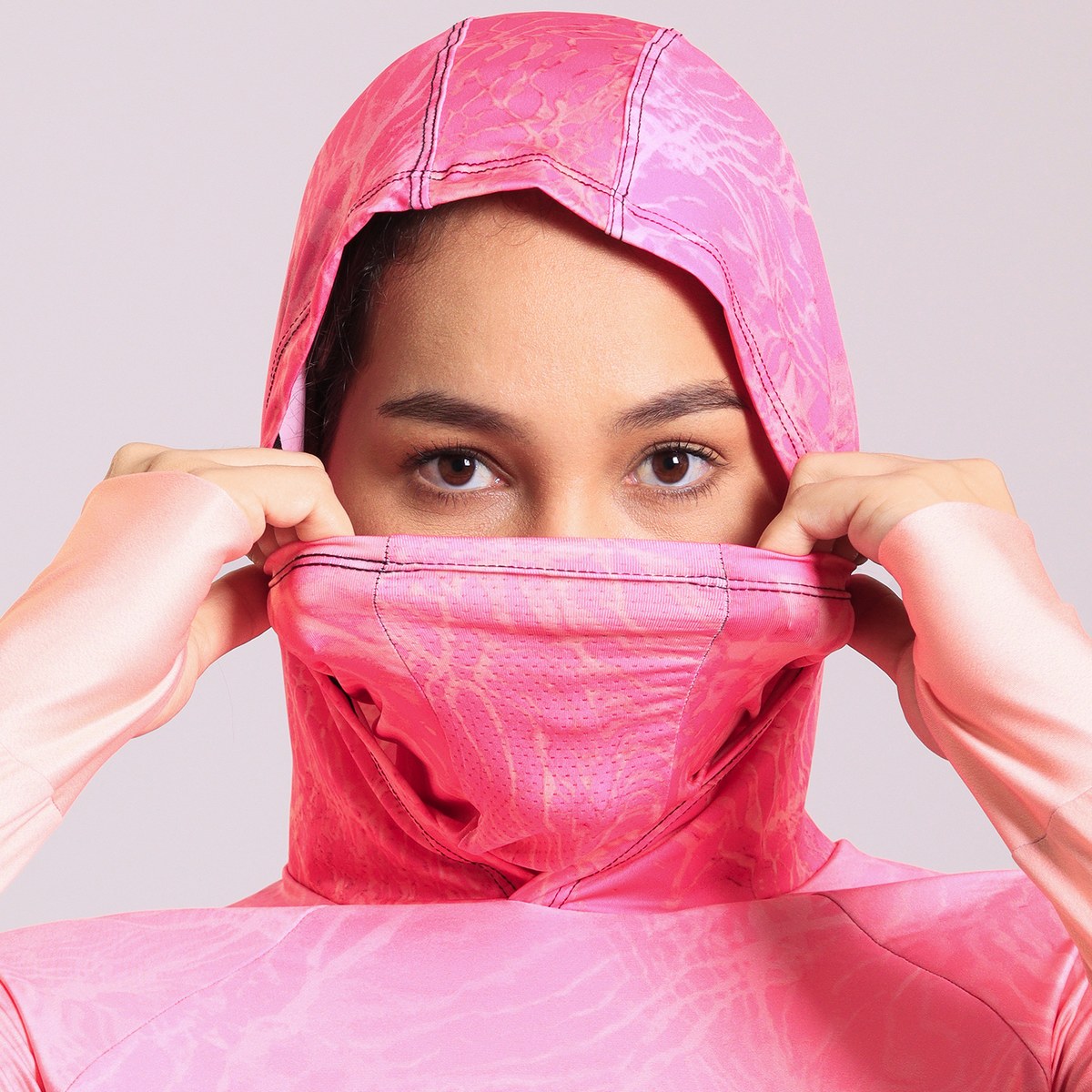 Camisa FusionX Feminina Brk Clean Efeito Água Laranja Rosa com Capuz e Proteção Solar UV50+