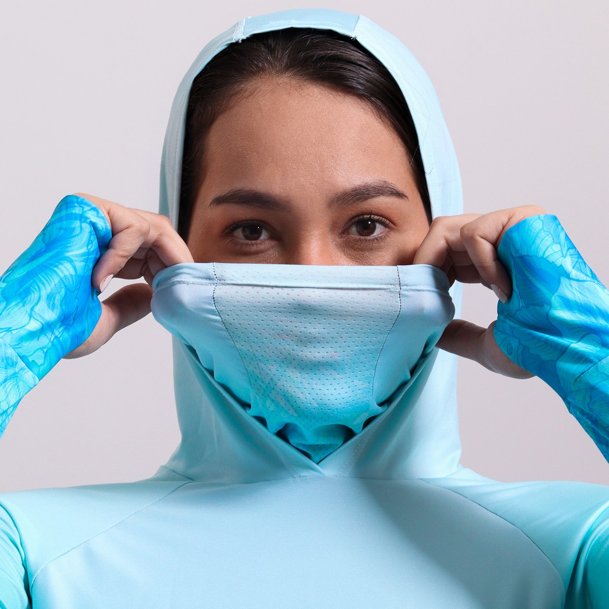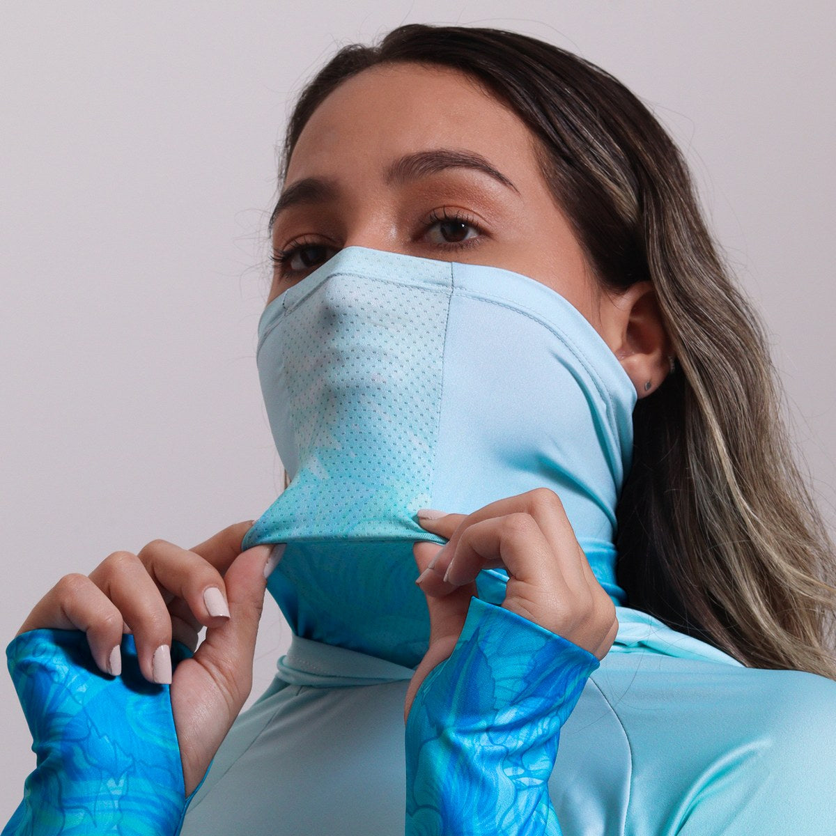 A bandana Black Mask integrada na camisa é feita com microfuros estrategicamente posicionados, permitindo uma respiração fácil e confortável. Por possuir elastano, vai se esticar e não apertar seu rosto além de garantir a proteção solar UV50+.