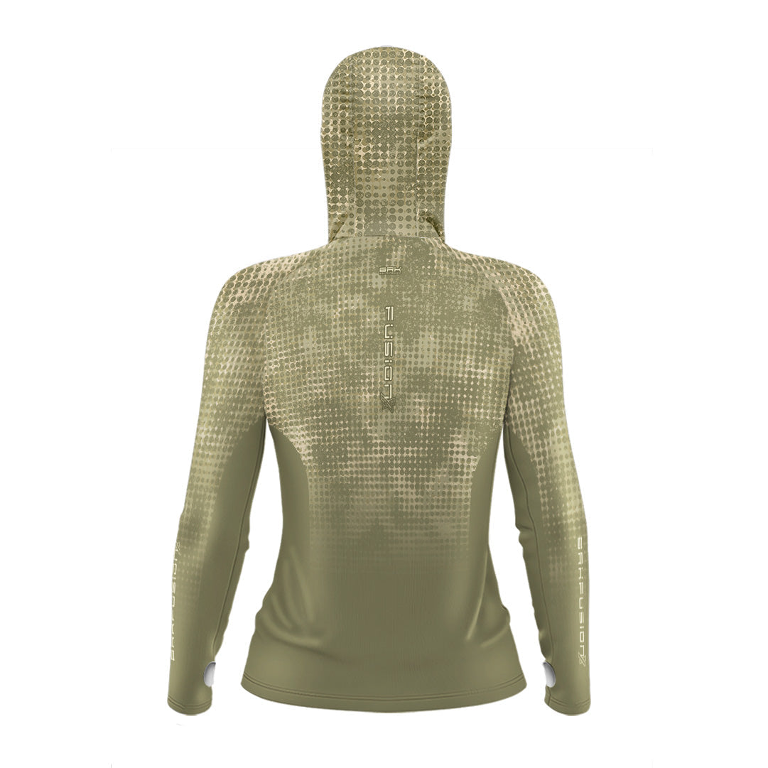 Camisa FusionX Feminina Brk Deep Verde Claro com Capuz e Proteção UV50+