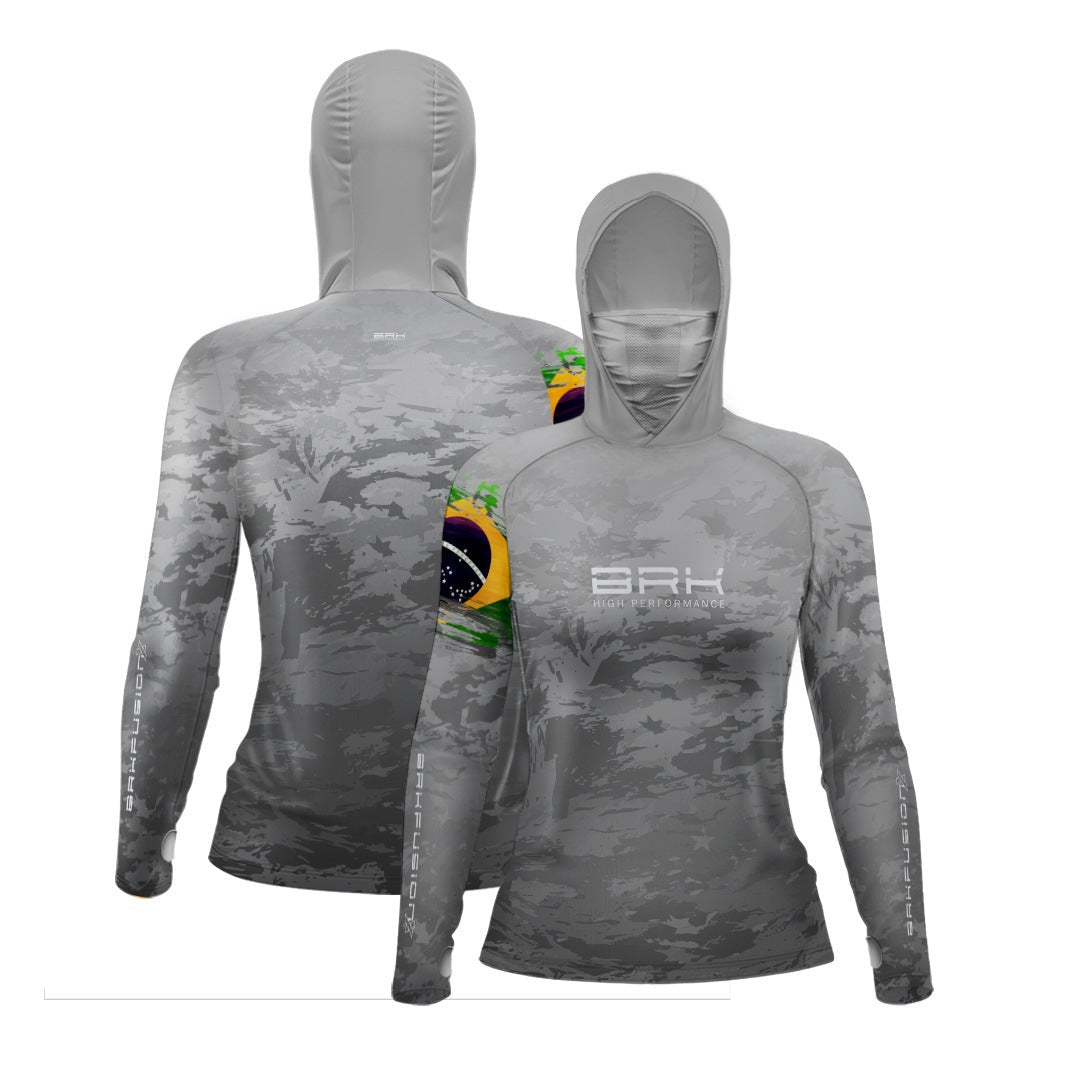 Camisa FusionX Feminina Brk Fishing Brasil Militar Cinza com Proteção UV50+