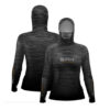 A bandana Black Mask integrada na camisa é feita com microfuros estrategicamente posicionados, permitindo uma respiração fácil e confortável. Por possuir elastano, vai se esticar e não apertar seu rosto além de garantir a proteção solar UV50+.