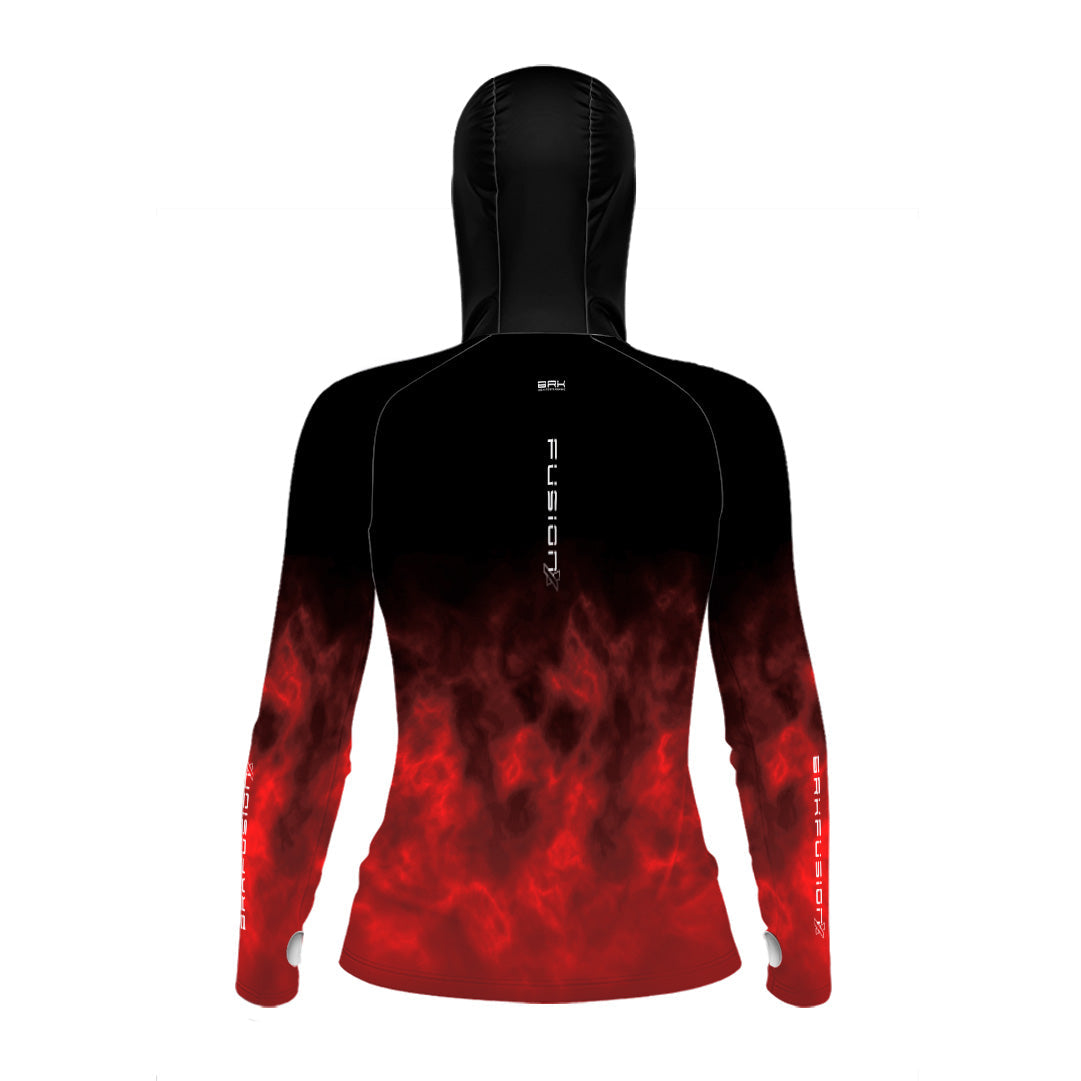 Camisa FusionX Feminina Brk Galaxy Preta e Vermelho com Capuz e Proteção UV50+