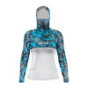 Camisa FusionX Feminina Brk Marine Camuflada Azul Branco com Capuz e Proteção UV50+