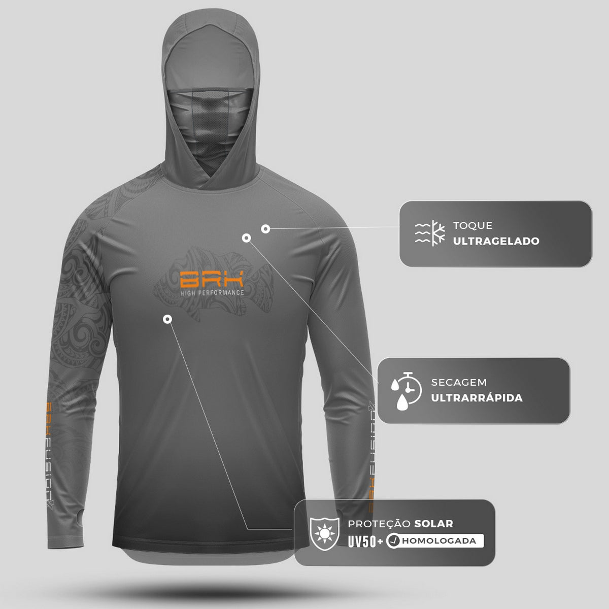 Camisa FusionX Maori Cinza Tucunaré Tribal BRK com Proteção Solar UV50+