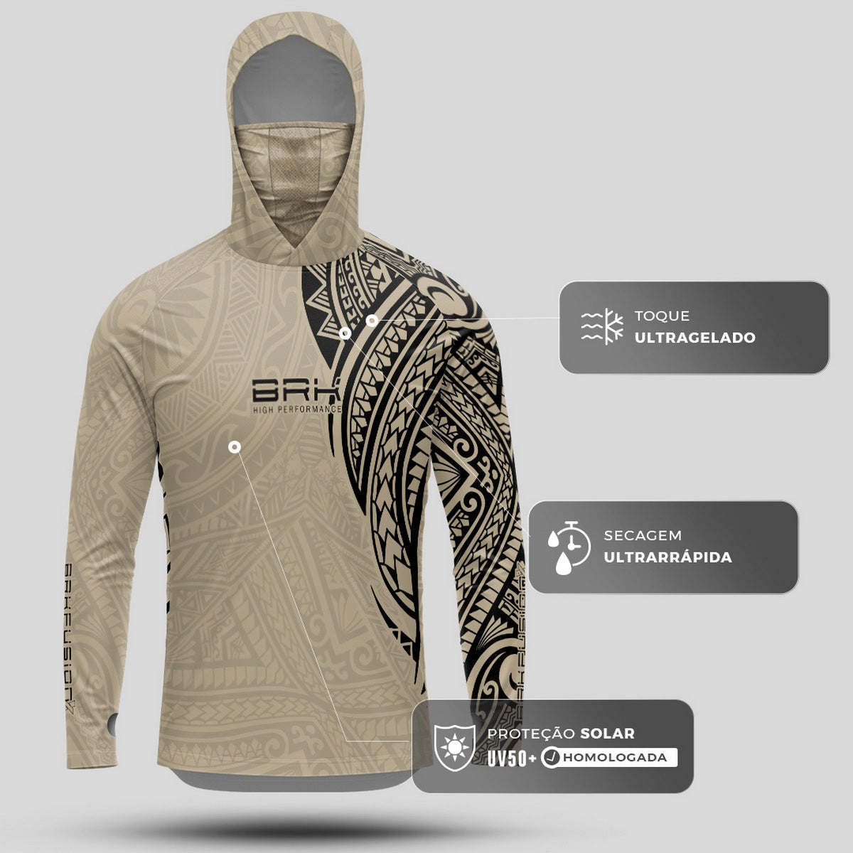 Camisa FusionX Maori Tribal Areia BRK com Proteção Solar UV50+