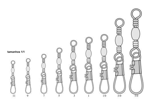 | Tamanhos disponíveis | 7, 5, 3, 1, 1/0 |